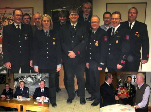 Jahresdienstbesprechung der Löschgruppe Dalhausen Erste Jahresdienstbesprechung des neuen Stadtbrandinspektor, Willi Spieker verabschiedet Löschgruppenführer Brandinspektor Ingolf Menke konnte eine große Anzahl an aktiven und passiven Mitglieder im Feuerwehrgerätehaus begrüßen. In seinem Jahresrückblick ließ er noch einmal alle Einsätze und Aktivitäten der Löschgruppe im Jahr 2009 Revue passieren, bevor der neue Stadtbrandinspektor Jürgen Vorwick über alle Einsätze und Lehrgänge der Freiwilligen Feuerwehr der Stadt Beverungen informierte. Des weiteren Berichte Vorwick über Änderungen im Funkkonzept des Kreises Höxter und anderen internen Abläufen der Freiwilligen Feuerwehr der Stadt Beverungen. Zum Abschluss seiner Ausführungen standen dann die Übergabe von Lehrgangsbescheinigungen sowie Leistungsnachweisen und Ehrungen, bei seiner ersten Jahresdienstbesprechung als Leiter der Freiwilligen Feuerwehr der Stadt Beverungen, auf der Tagesordnung. Für 35 Jahre Mitgliedschaft in der Löschgruppe Dalhausen wurde Johannes Dierkes mit dem Verdienstkreuz des deutschen Feuerwehrverbandes in Gold ausgezeichnet, Elmar Schwarzendahl erhielt für die 25 jährige Mitgliedschaft das Verdienstkreuz des deutschen Feuerwehrverbandes in Silber. Seit 10 Jahren sind Fabian Leiße, Michael Feiler und Christoph Koch Mitglieder der Löschgruppe. Manfred Böker und Karl-Heinz Dierkes wurden für 35 jährige sowie 25 jährige passive Mitgliedschaft geehrt. Nach erfolgreicher Teilnahme an den Leistungsnachweisen konnte das Leistungsabzeichen des Landesfeuerwehrverbandes in Gold an Astrid Redeker und Benjamin Leiße sowie in Gold auf blauem Grund an Tobias Dierkes überreicht werden. Marco Wiesmann wurde aus der Jugendfeuerwehr übernommen, Astrid Redeker zur Hauptfeuerwehrfrau und Kevin Feiler zum Unterbrandmeister befördert. Kevin Feiler absolvierte die Lehrgänge: ABC-Ausbildung, Funk und Kartenkunde, Technische Hilfeleistung „Straße“, sowie den Truppführerlehrgang. Tiemo Müller und Fabian Leiße den Lehrgang Funk und Kartenkunde und Rainer Suermann besuchte den Lehrgang Drehleitermaschinist. Willi Spieker erhielt als besonderen Dank von allen Mitgliedern der Löschgruppe, für seine jahrelangen Bemühungen um unser leibliches Wohl bei allen Dienstabenden und Veranstaltungen, von Löschgruppenführer Ingolf Menke und seinem Stellvertreter Michael Siewers unter tosenden Applaus aller Anwesenden einen Präsentkorb. Zum Abschluss der Versammlung informierte Löschgruppenführer Ingolf Menke noch über die geplanten Aktivitäten für das Jahr 2010, bevor die Jahredienstbesprechung mit einem gemeinsamen Abendessen ausklang.