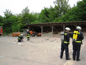 Truppmannlehrgang 2007 23 junge Brandschützer von der Freiwilligen Feuerwehr der Stadt Beverungen und der Freiwilligen Feuerwehr der Stadt Bad Karlshafen absolvierten jetzt erfolgreich einen Truppmann-Lehrgang in Beverungen. Dafür drückten die Lehrgangsteilnehmer in ihrer Freizeit mehr als 80 Stunden die Schulbank. In diesem Lehrgang wurden die Grundlagen der feuerwehrtechnischen Arbeit in Theorie und Praxis vermittelt. Besonderer Wert wurde dabei auf praxisorientierte Ausbildung gelegt, wobei die Teilnehmer ihr Erlerntes in zahlreichen Einsatzübungen sofort umsetzen konnten. Die reguläre Feuerwehr-Grundausbildung hat nach Abschluss dieses Lehrganges jedoch erst begonnen. In den nächsten Monaten und Jahren folgen weitere Ergänzungslehrgänge der verschiedenen Fachbereiche. Folgende Feuerwehrmann-Anwärter bildeten sich in ihrer Freizeit zum Wohl der Allgemeinheit weiter: Alexander Enns, René Behler und Johannes Zarnitz aus Beverungen Cornelia Hedwig, Fabian Leiße und Kevin Feiler aus Dalhausen Dieter Böger aus Haarbrück Marius Ulrich und Markus Frewer aus Herstelle Daniel Hartmann und Benedikt Sievers aus Jakobsberg Jens Groppe aus Rothe Marian Redlich und Thomas Kemper aus Tietelsen Andreas Naskrent, Roman Tater, Melanie Hensel, Ulrike Schlüter und Lars Gallinger aus Wehrden Jörg Hartung und Frank Schünemann aus Würgassen Dennis Heuser aus Bad Karlshafen Lena Seela aus Helmarshausen Ausbilder: Hier noch einige Fotos vom Prüfungstag: